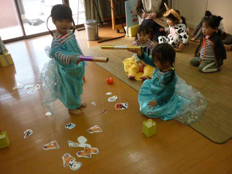 まだ見つけられていないお友だちに「ここだよ」と小声で教えてあげる微笑ましい光景も