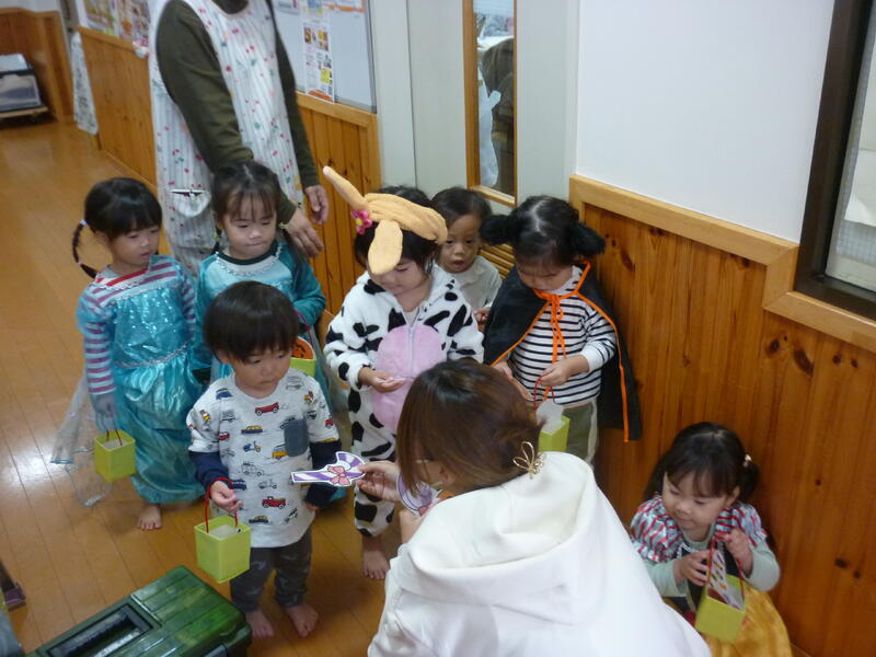 練習通り「トリックオアトリート!!!」と元気に叫びペロペロキャンディーを貰いました♪