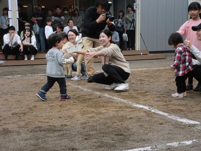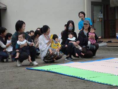 運動会の中で、めばえのお友達のかけっこを予定していますが、急遽、ハイハイのお子さんも参加していただけることとなりました