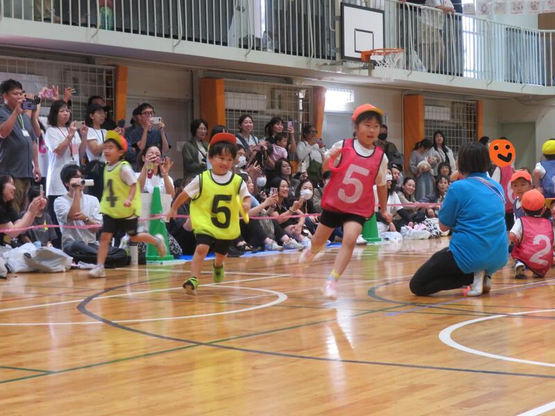 はと組さん・かもめ組さん・くじゃく組さん、幼児全クラスが合同で熱気に満ちた勝負