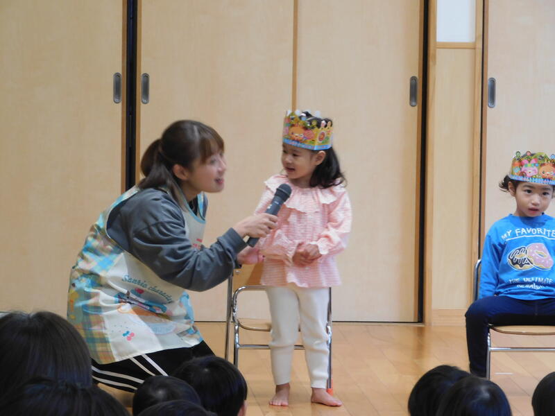 ひよこ組のお友だちもマイクを向けると一生懸命お話をして、インタビューに答えてくれましたよ