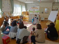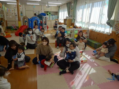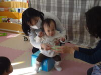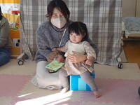 お子さんたちは、オモチャを触ったり近くの友だちが気になり、ずりばいで近寄ってご挨拶。「ママ何してるの?」とママを見ているお子さんもいましたね。