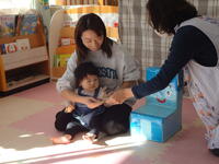 お子さんたちは、いつも遊んでいる場所なので、好きなおもちゃを探してママのそばで遊んだり、慣れてくるとママから離れ、気になる場所へ行き遊んでいました。ママも集中する時間が出来たので作業が進みましたね。