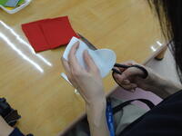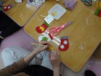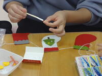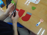 フェルトに書いてある図にそって切り、ボンドで貼り合わせていきます。