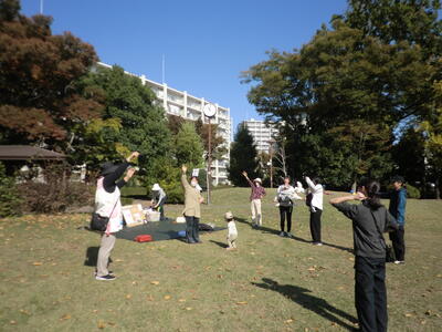 お日様の下、広い公園でのサンサン体操も気持ちよかったですね