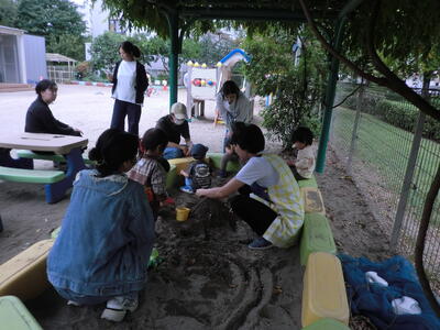 公園に遊びに来ていた めばえ併設の館第二すぎのこ保育園のそらぐみさん(年長組)も