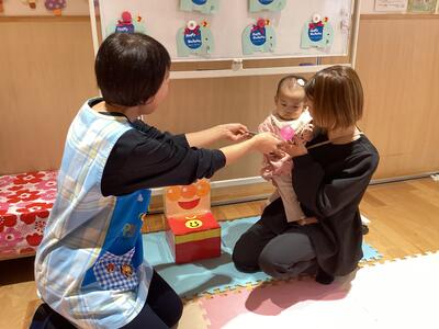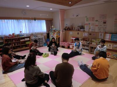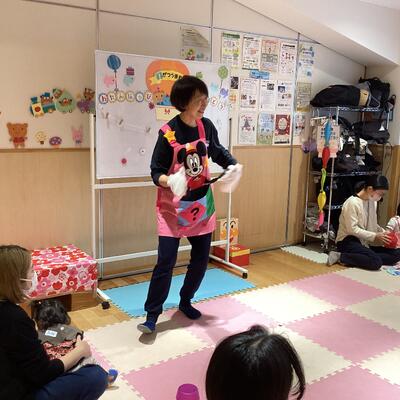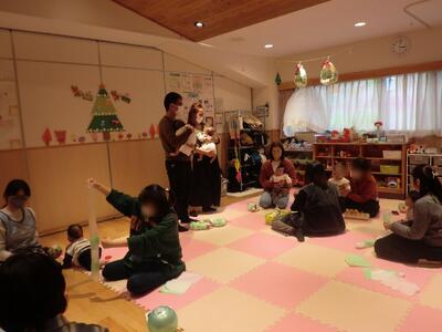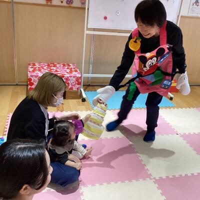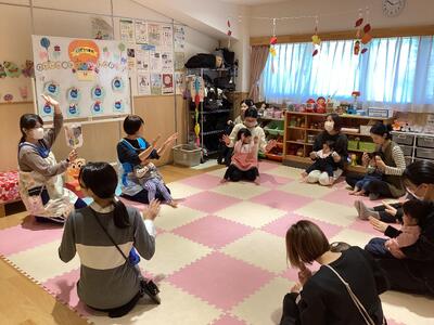 最初に手遊びをした後、ママに自己紹介をしてもらいました