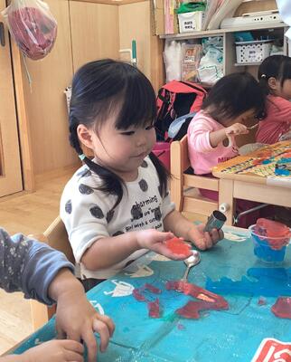 何人かの子ども達は、お腹が空いていたのか口に入れようとする姿が(;´∀`)きっと美味しそうにみえたんですね♡
