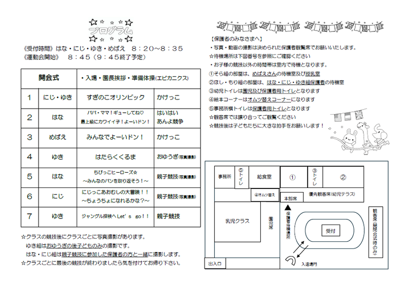 ※ゆきぐみの保護者の方は、ゆきぐみのお遊戯が終わりましたら、そらぐみへお越しください。