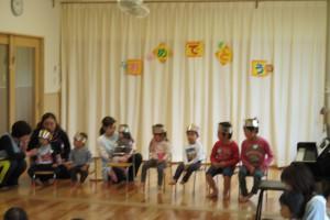 次に先生達から、「早起きって気持ち良い!」というペープサートの出し物を。