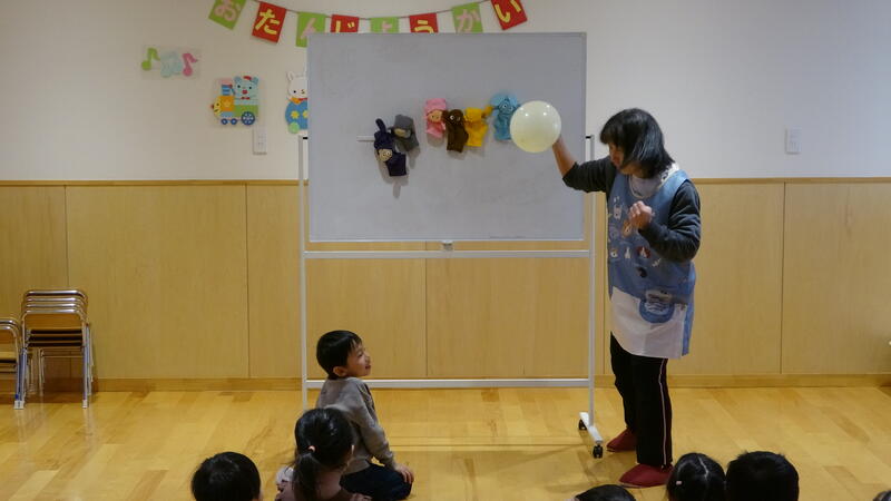・最後に、そら組の2月生まれのお友だちが大きく膨らみ飛んで行った『かぶ型の風船』を持って来てくれました。