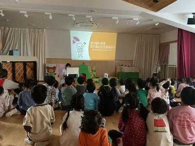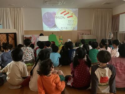 2025年10月29日(水)に「おいも掘り」に向けての食育講座を行いました。午後おやつ後に遊戯室に集まり、“さつまいものひみつ”というスライドショーを幼児組でみました(*´▽`*)