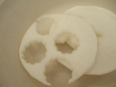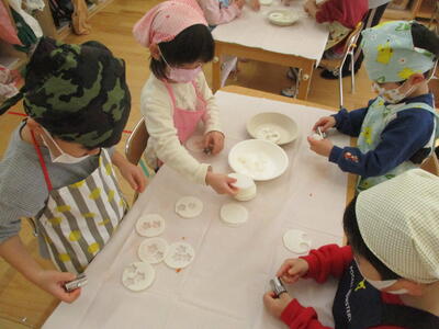 大根の大きさを見て、「これは4つぬけそう!」「これはあと1つできるかなぁ?」とおともだちと話しながら頑張って型抜きをしてくれました☆彡