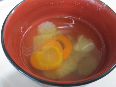 どのクラスも、可愛く型抜きした根菜汁は完食でした♡