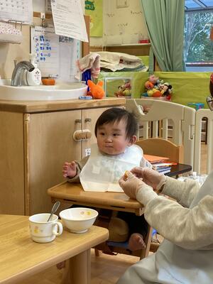 難しい子もいましたが、先生の補助付きで上手にむける子ども達も!!むいたバナナはそのままお口にパクっ!好みが分かれましたが、嬉しそうにバナナを頬張る姿が終始可愛らしかったです(⋈◍>◡<◍)。✧♡