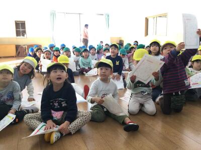 ホールに集まった子どもたちは、レンジャーという言葉にワクワクしている様子で
