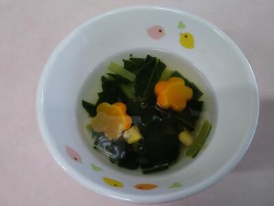 スープは人参をお花やかぼちゃの形にくり抜き見た目も可愛くしました(^_-)-☆