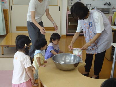 大きなボールに小麦粉を入れるところから、みんなの目がキラキラ☆