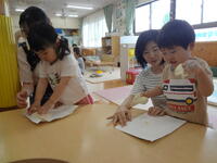 1回目は土台作り、2回目は画用紙を貼り仕上げをしていきます。