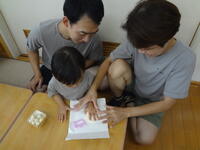 9月は3組の親子が牛乳パック椅子作りに来てくれました!