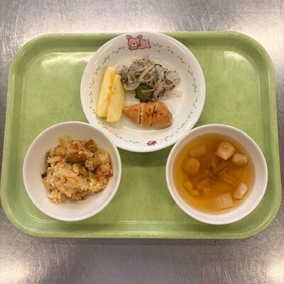 さっぱりとしたゆかりあえとすまし汁も一緒に食べながら楽しい給食の時間になりました。