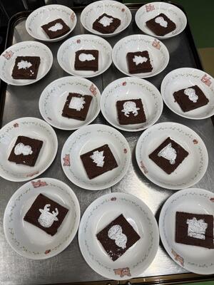 ブラウニーに粉糖でクリスマス仕様のデコレーションをしました ★