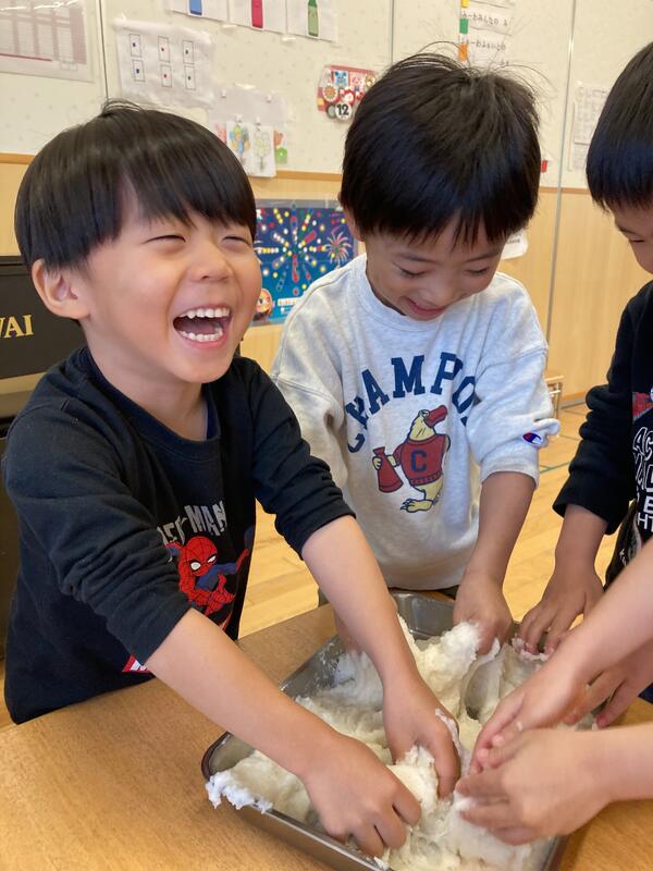 クラスに戻ってからは、自分たちでついたお餅で感触遊びを楽しみました!