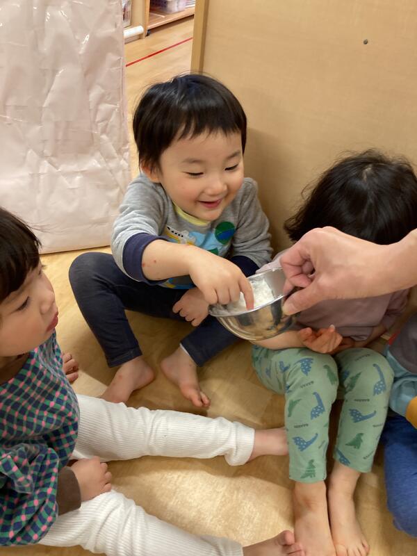 初めてのおもちの感触にびっくりする子もいましたが、とっても興味津々でした