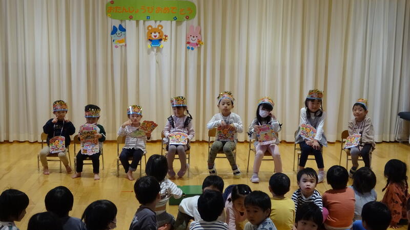 先月お休みだったお友だちを含めて、7人のお友だちが、みんなからお祝いしてもらいましたよ