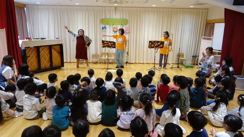 トロンボーンの音色に、子どもらしい「おならみたい…」という感想があがったりもしましたが(笑)、素敵な音色に子どもたちもうっとり…♡ 中には、ウトウト…と眠ってしまう子もいました☺