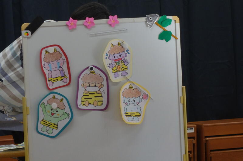 保育園のお友達の心の中の鬼も退治してほしいなと思い、5人の鬼が登場しました。