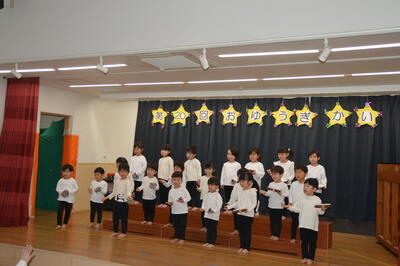 ほし組さんは合奏と合唱を披露してくれました。合奏ではタンブリン、鈴、カスタネットを使っての