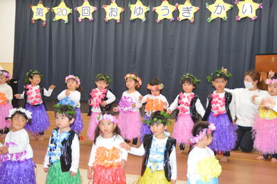 ハワイアンの衣装に身を包んでおゆうぎを披露してくれました!「アロハ~‼」の掛け声と共に