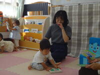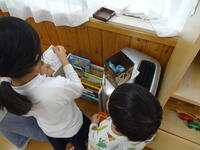 お子さんたちは、いつも遊んでいる場所なので、好きなおもちゃを探してママのそばで遊んだり、慣れてくるとママから離れ、気になる場所へ行き遊んでいました。ママも集中する時間が出来たので作業が進みましたね。