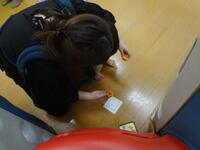 前回椅子を作った方は、踏み台を作りましたよ。踏み台も牛乳パックの個数は一緒なので、作りたい方はどうぞ~