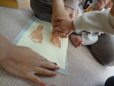 足の裏は「くすぐった~い」みんな上手にペッタン!