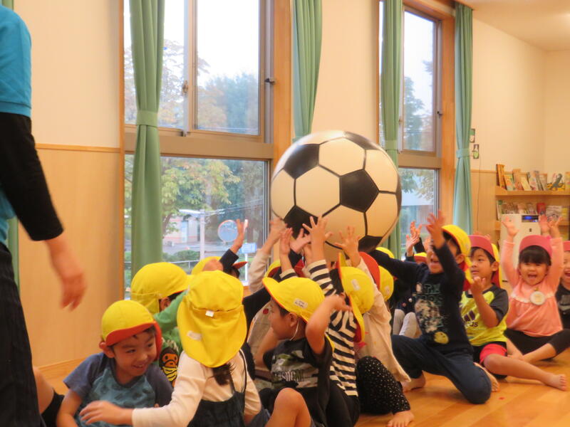 10月23日(金)は、かもめ組・くじゃく組の遠足でしたが、雨が降ってしまい残念ながら園外には行くことができませんでした・・・。子ども達も残念そうにしていましたが、レクリエーションの時間になると笑顔いっぱい!!大盛り上がりで楽しむ姿が見られました♪