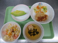 給食は、ちらし寿司 チキンカツ コールスローサラダ すまし汁 メロン でした(^O^)/