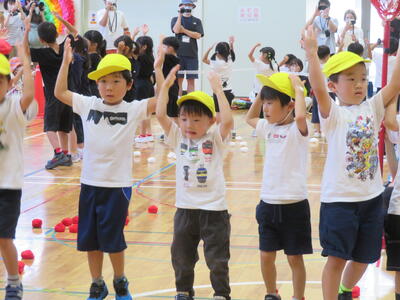 幼児クラスの子どもたちにとっても、大きな体育館での運動会は
